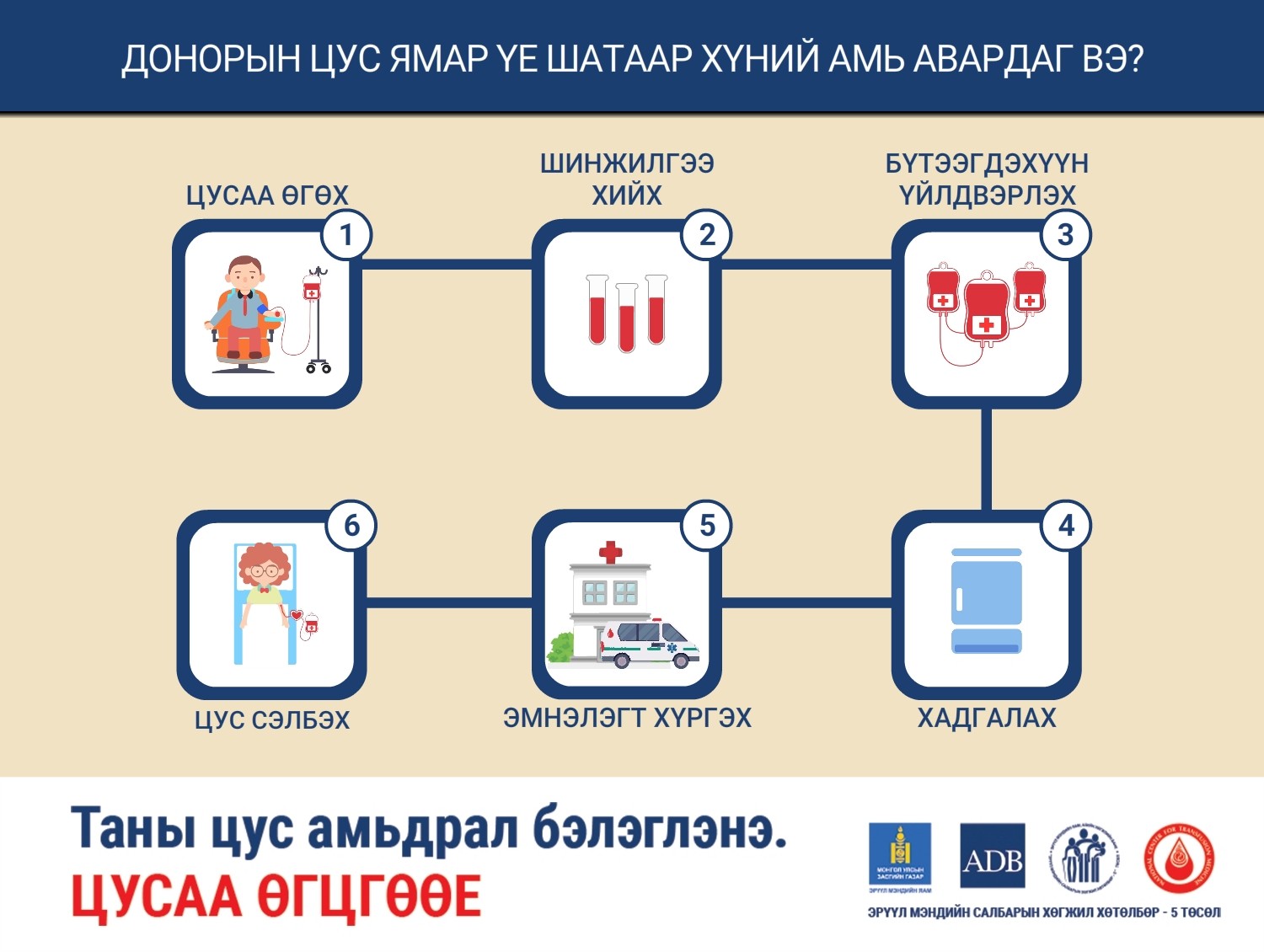 Цусаа хандивлан бусдын амь насыг аврахад хувь нэмрээ оруулахад уриалсан цуврал нийтлэл хүргэж байгаа билээ. Энэ удаагийн дугаараар таны цус ямар үе шатыг дамжин бусдад хүрдэг тухай хүргэж байна.