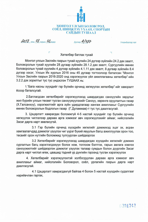Эх сурвалж: mecss.gov.mn - Боловсрол Соёл Шинжлэх Ухаан Спортын Яам