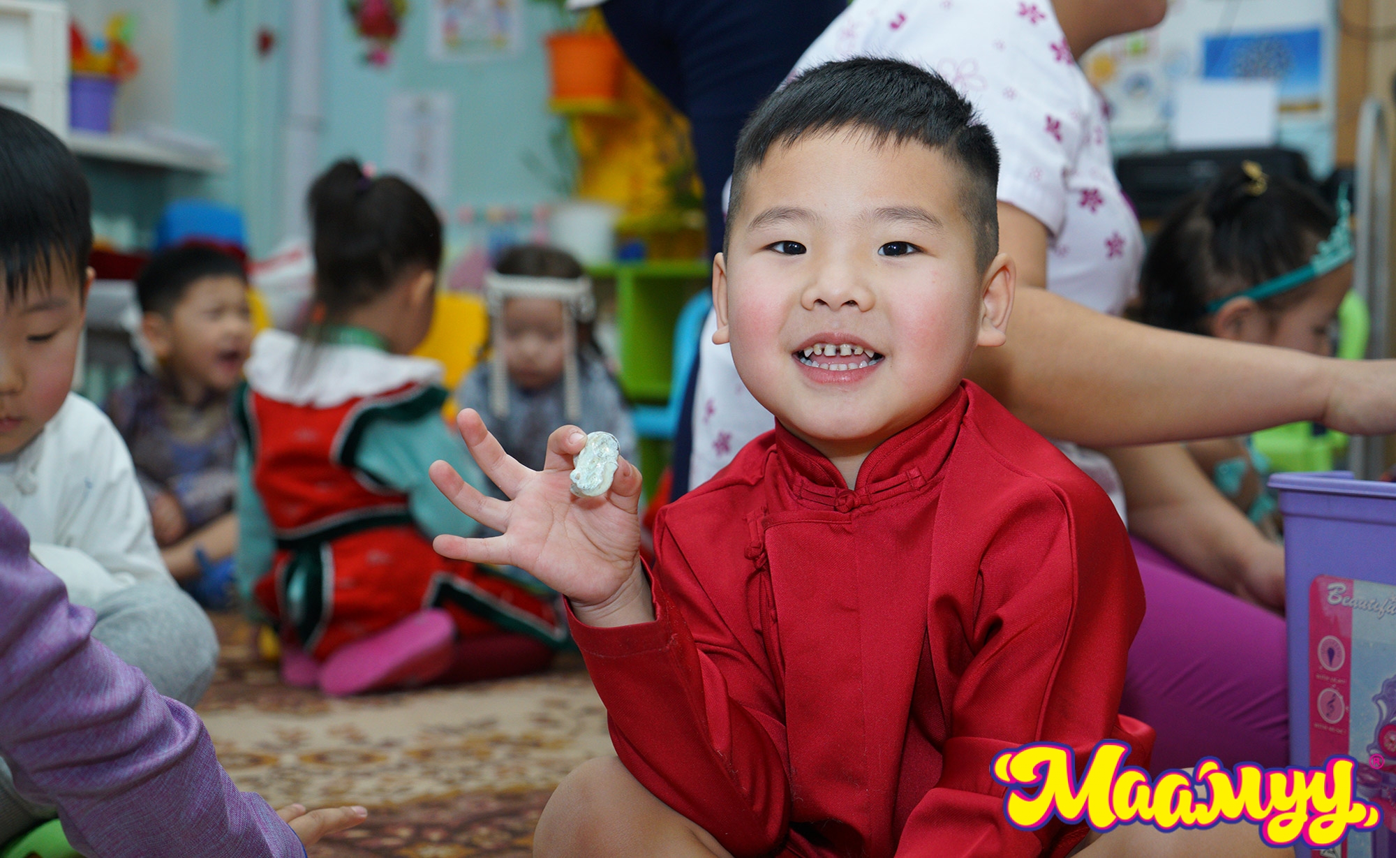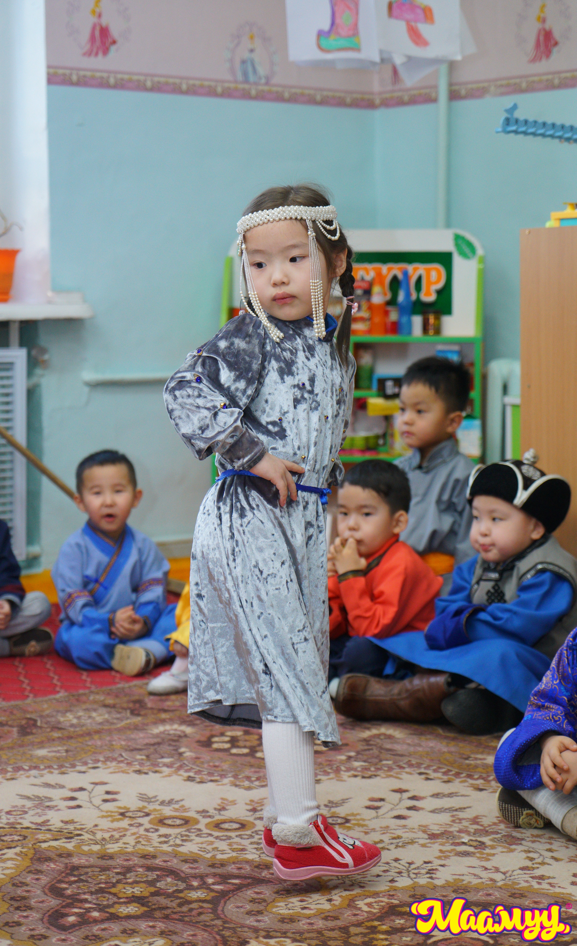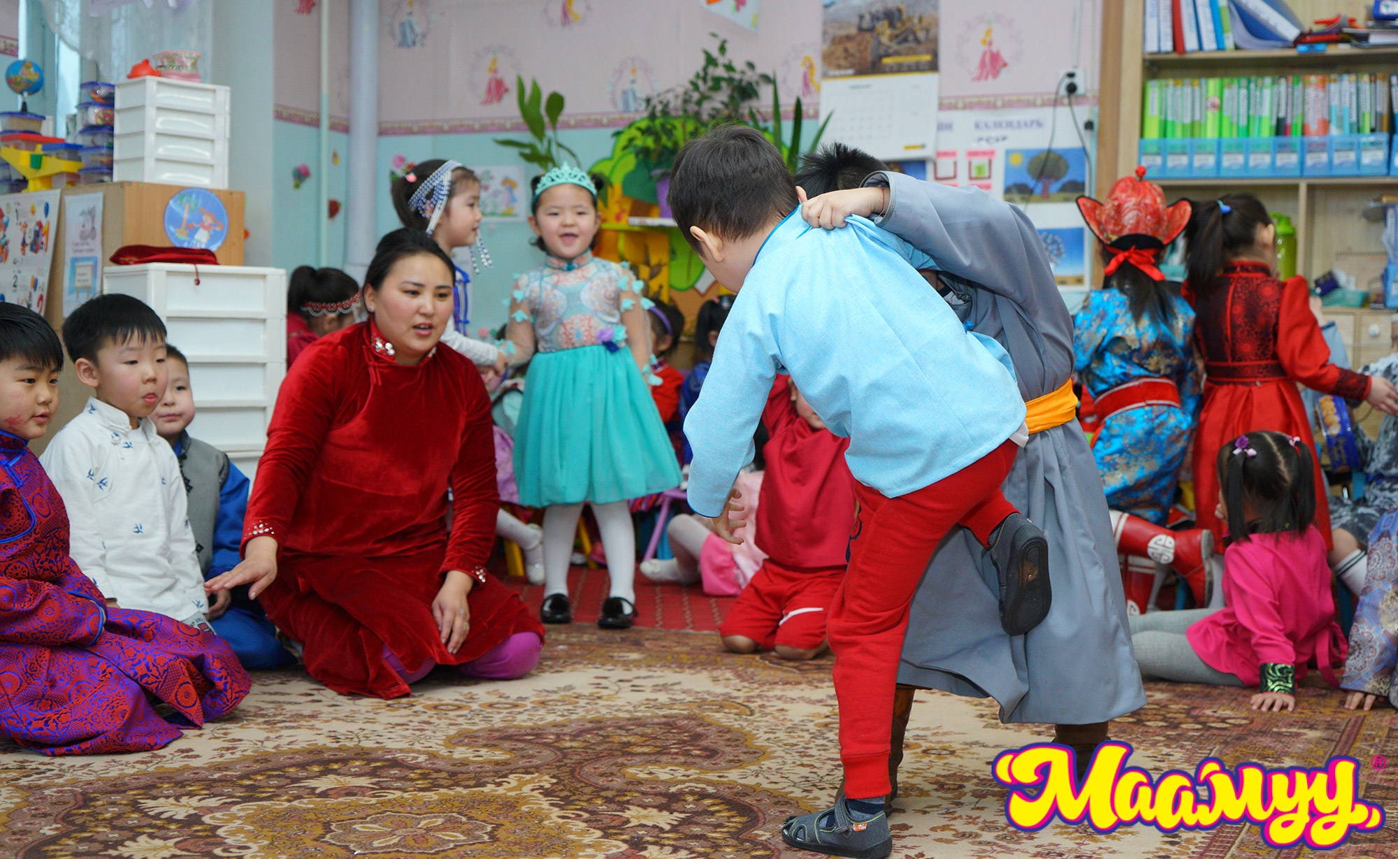 Тус цэцэрлэгийн багш нар хүүхдүүдэд мэндлэх хүндлэх ёс, ардын дуу болоод үндэсний тоглоом наадгайгаар хэрхэн тоглохыг заав. Хүүхдүүд үндэсний тоглоом наадгайгаар наадаж, монгол ардын дуу дуулж авъяас билгээ уралдуулсан юм.
