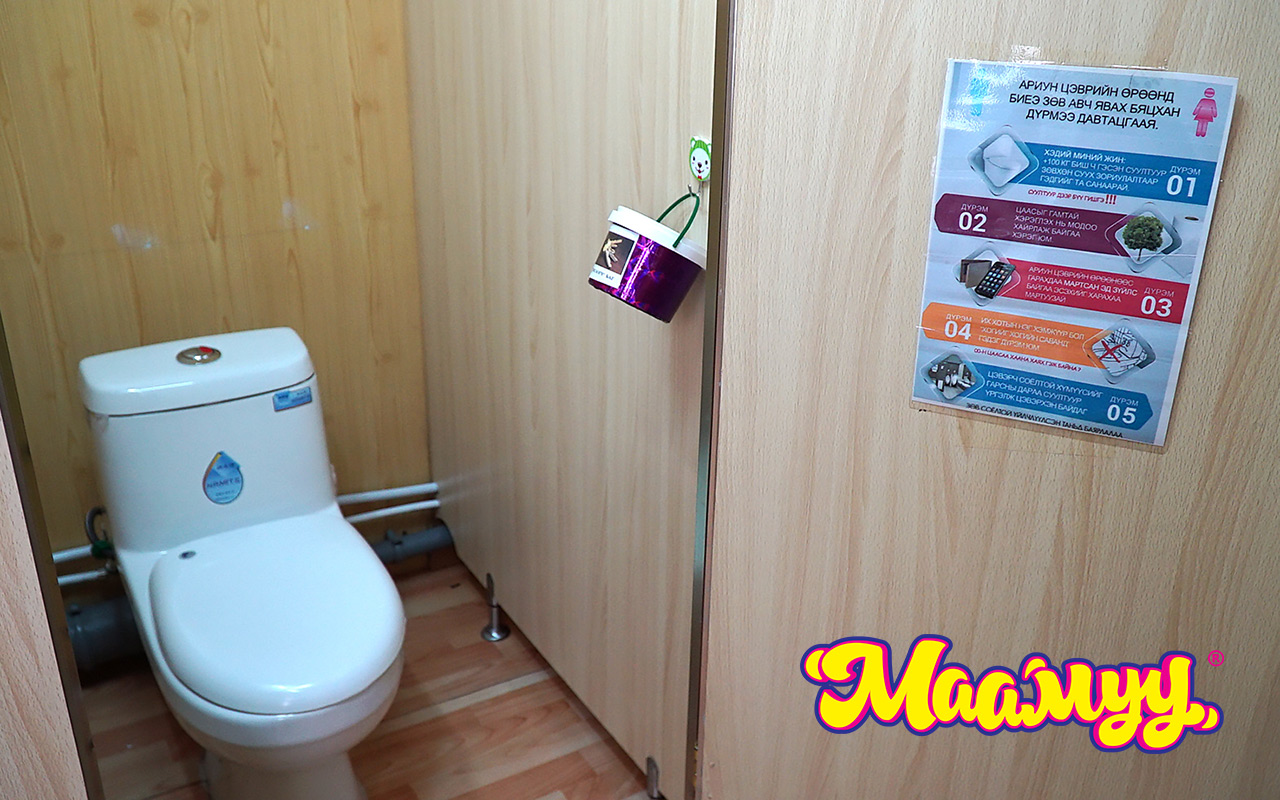2017 онд байгуулсан ариун цэврийн байгууламжуудыг сургуулийн төв байртай хүзүүвчээр холбож, нэмэлт дулаалга, халаалт суурилуулах болсноороо онцлог. Мөн төслийн үр дүнд Монгол Улсад мөрдөх орон нутгийн ариун цэврийн байгууламжийн “Нэг маягийн зураг”-ийг холбогдох төрийн байгууллагууд баталснаар цаашид байгуулах бүх ариун цэврийн байгууламж уг төс загвараар баригдах юм.