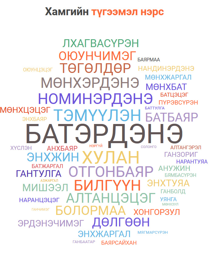 Нэр гэдэг нь бидний хувьд энгийн юм шиг хэрнээ олон далдын хүч бэлгэ дэмбэрлийг агуулдаг чухал зүйл ажээ. Айлд шинэ хүн мэндлэхэд эцэг эх нь ламаас нэр асууж, хувь заяаг нь тэгшилдэг уламжлал өнөөгийн бидний үед мартагдах дөхсөн гэлтэй ээж, аавууд чамин сайхныг нь л бодож онцгой нэр хайрлахыг хүсдэг болж. Гурван өдрийн дотор нэр хайрлаж, аав нь насан туршдаа дуудуулах тэр эрхэм нэрийг нь хөвгүүн байвал баруун чихэнд нь, охин төрвөл зүүн чихэнд шивнэдэг Монгол заншил бий.