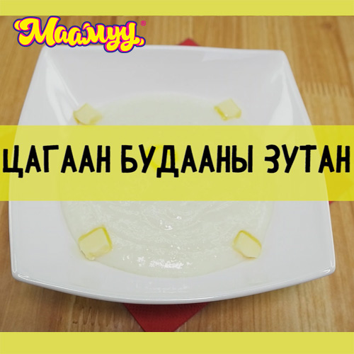 ОРЦ: Мах - 50гр Цагаан будаа - 30гр Лууван - 10гр Ургамлын тос - 10гр Сонгино - 10гр Ус - 150гр ШИМ ТЭЖЭЭЛ: Цагаан будаа нь В, С, Е зэрэг аминдэмүүд болон эрдсүүдийг өөртөө ихээр агуулдаг. Эдгээр нь нэлээн идэвхтэй антиоксидант бөгөөд хамгийн чухал нь коллаген агуулдгаараа онцлогтой.